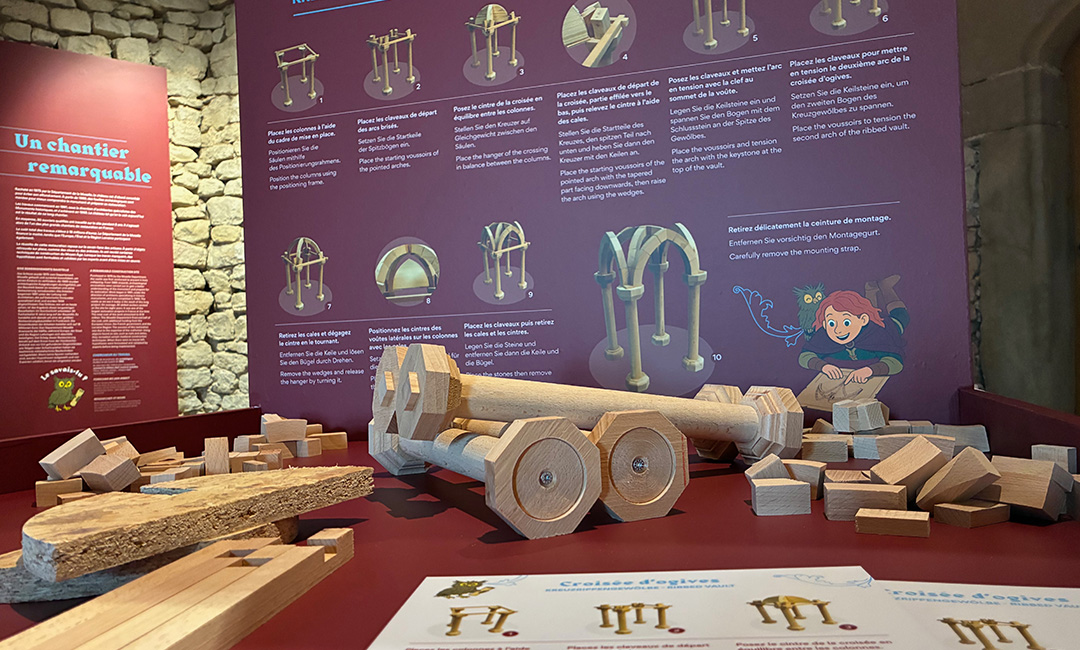 Models and reconstructions — touch to understand: at the heart of a space dedicated to medieval architecture, three build-it-yourself models play a central and educational role: