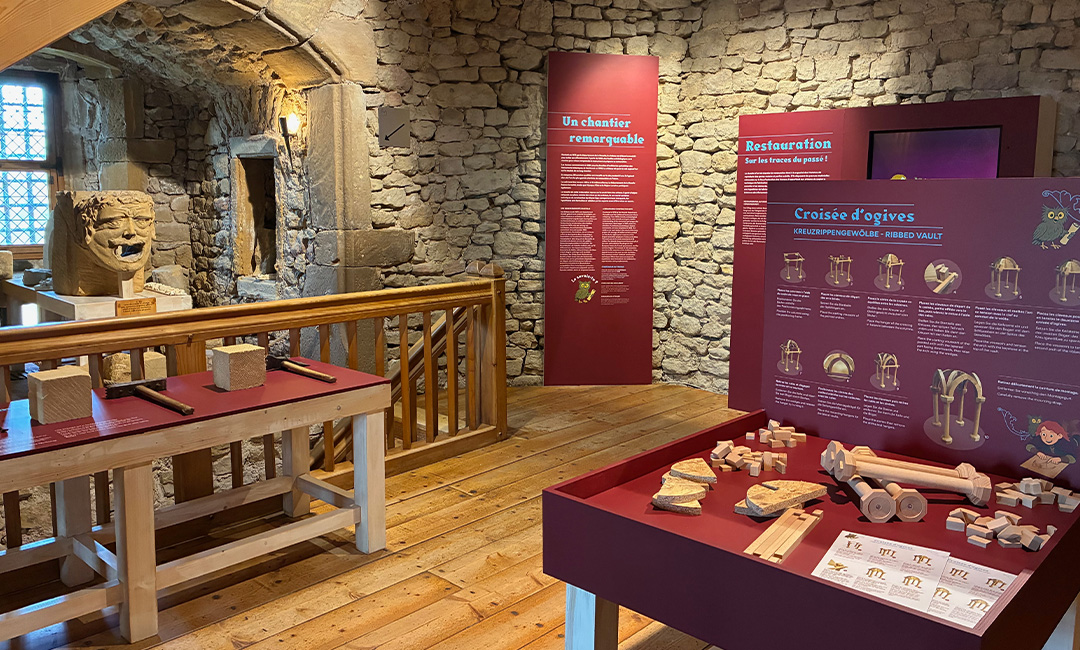 Anamnesia designed and created the Ladies’ Tower interpretation centre, dedicated to medieval architecture, building techniques and the trades involved in the restoration of historic monuments. The centre welcomes visitors of all kinds, from individual visitors to school groups, offering interactive displays, hands-on models and a graphic exhibition trail.
