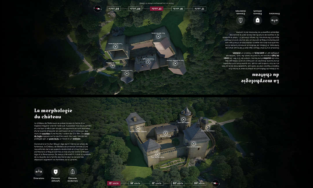 - Exploring the castle from different angles via an interactive map: by touching a point, visitors can access the history of that part of the building, the materials used and the changes made over time